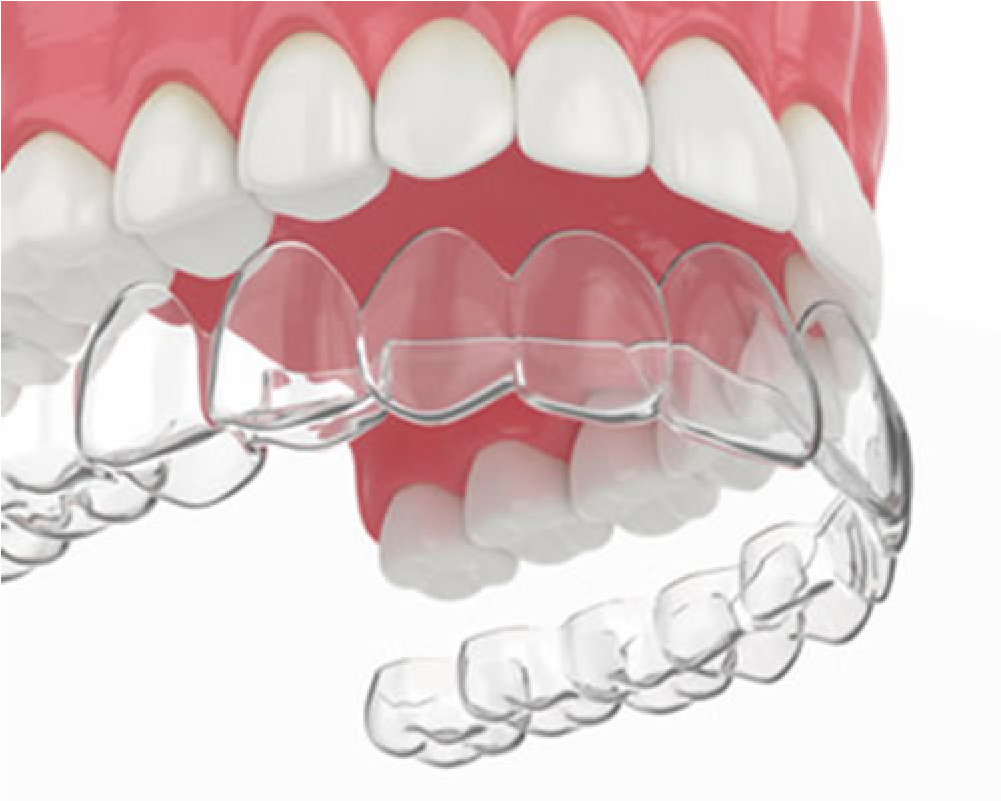 A series of invisible, removable, and comfortable acrylic trays that straighten your teeth like braces.